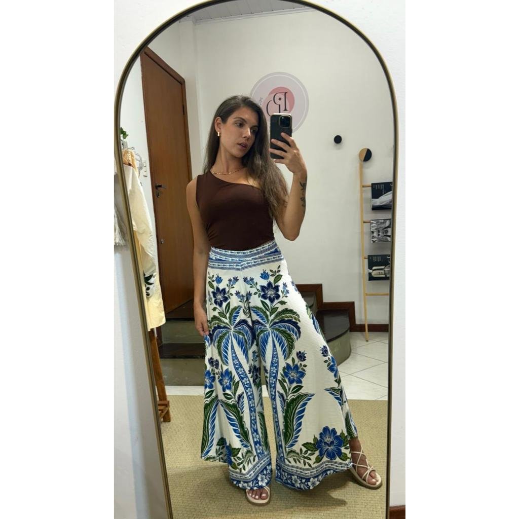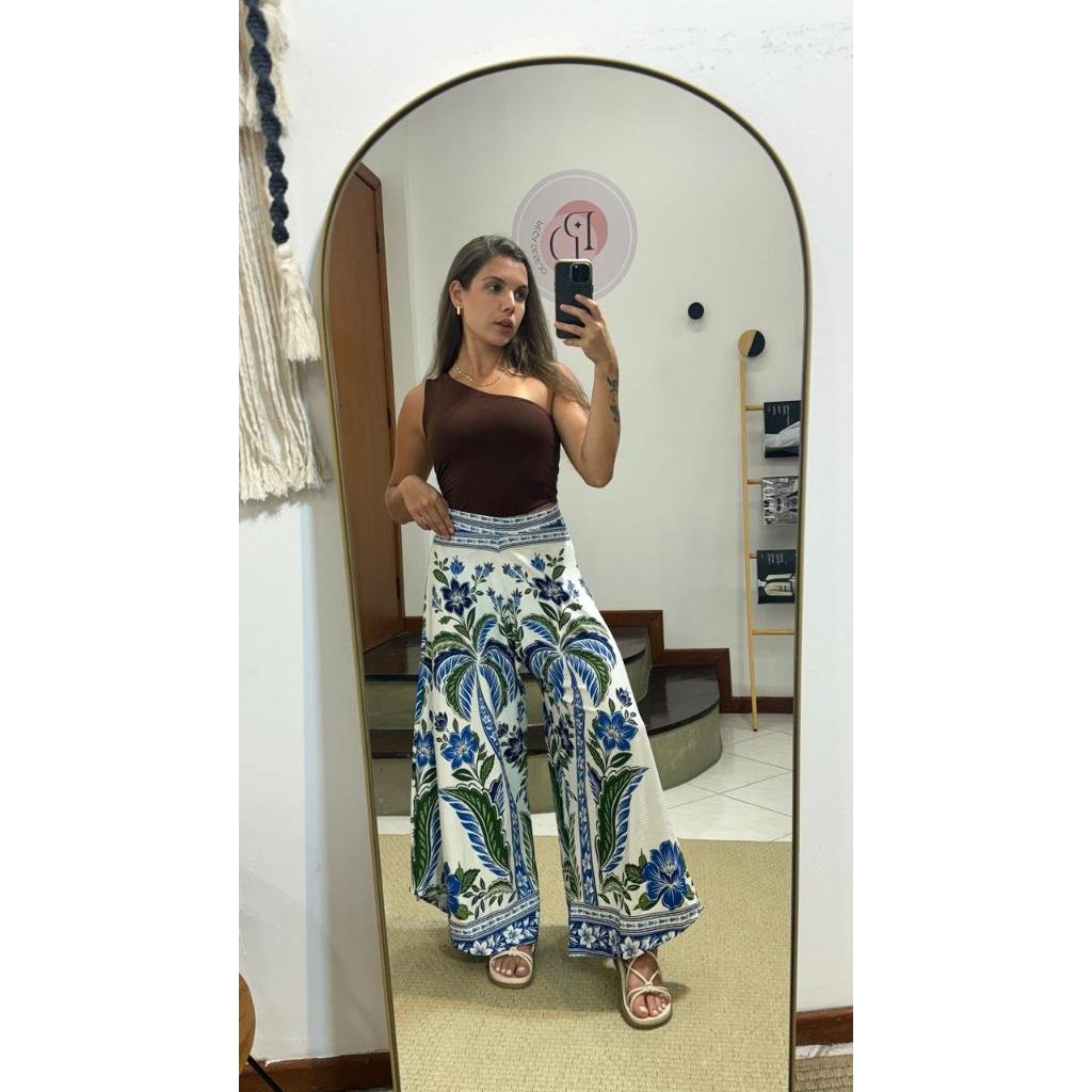 calça farm pantalona tropicance off, possui elástico no cós, modelagem ampla, tecido canelado com alta elasticidade, comprimento longo, estampada, sem bolsos, com tag