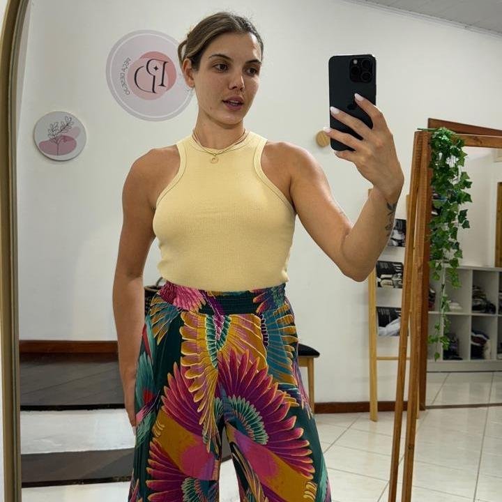 Regata Camila Bege, confeccionada por malha de ribana com alta elasticidade, possui gola redonda, modelagem justa ao corpo, alças médias, cavas estendidas e decote posterior nadador, com tag.