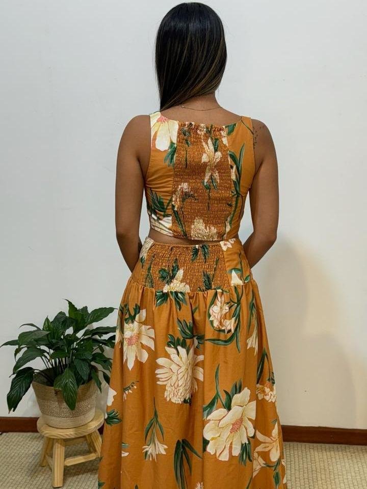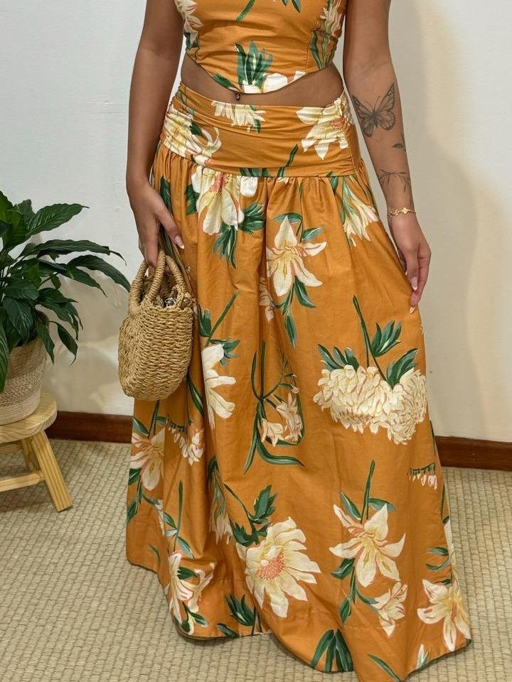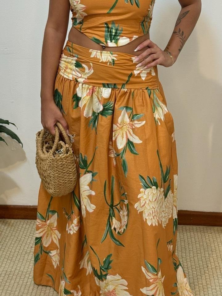 Saia Floral Alice, possui modelagem ampla, zíper invisivel, bolsos frontais, estampa floral alice, leve e fluida, com tag