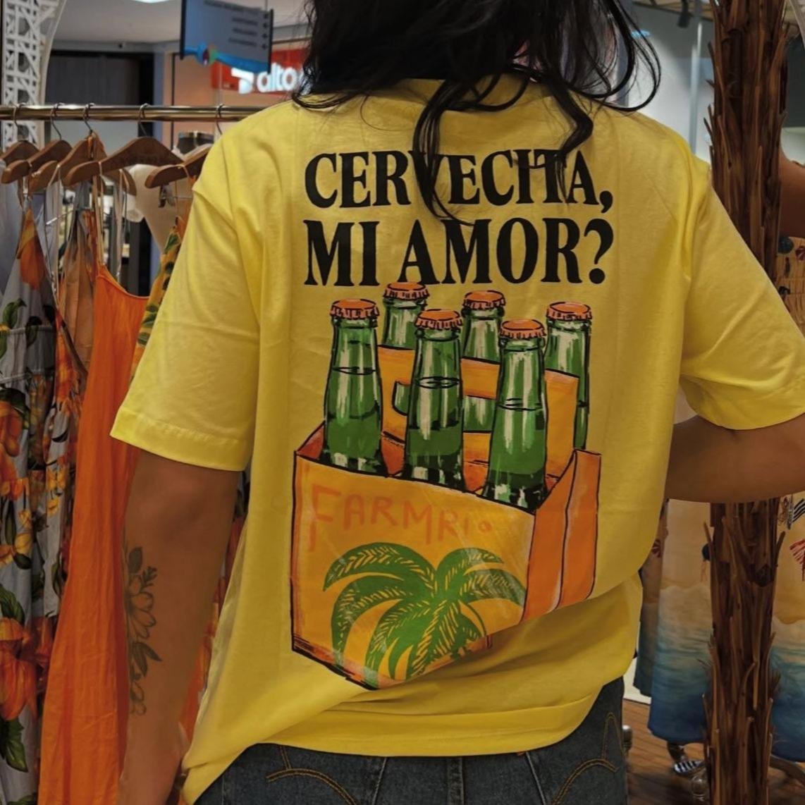 T-Shirt Média Cervecita, possui gola redonda em ribana canelada, mangas curtas, shape solo, estampa frontal em silk com cores contrastantes, acabamento pespontado, com tag.