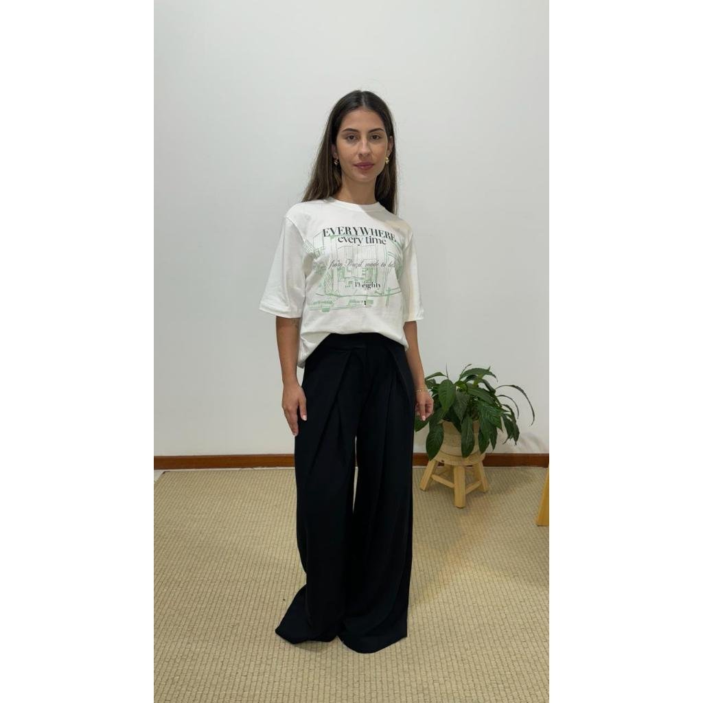 T-shirt Shoulder Everytime, possui modelagem reta, comprimento normal, mangas curtas, decote redondo com acabamento de ribana, tecido leve e caimento fluido, estampa em cores contrastantes